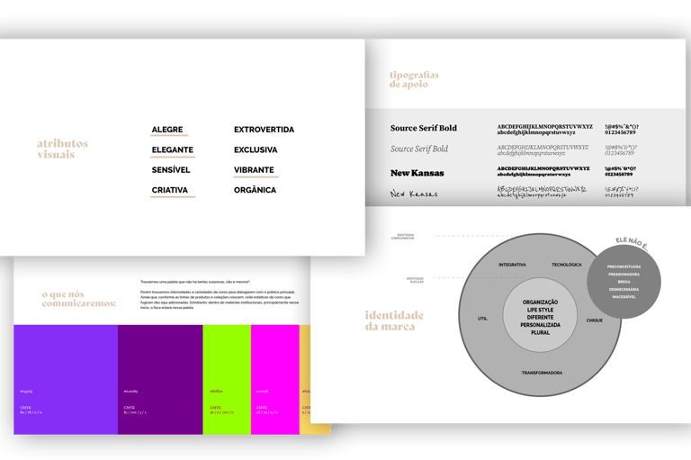 Uma identidade visual completa com logo, paleta de cores, as fontes e estilos visuais exclusivos para a sua marca;